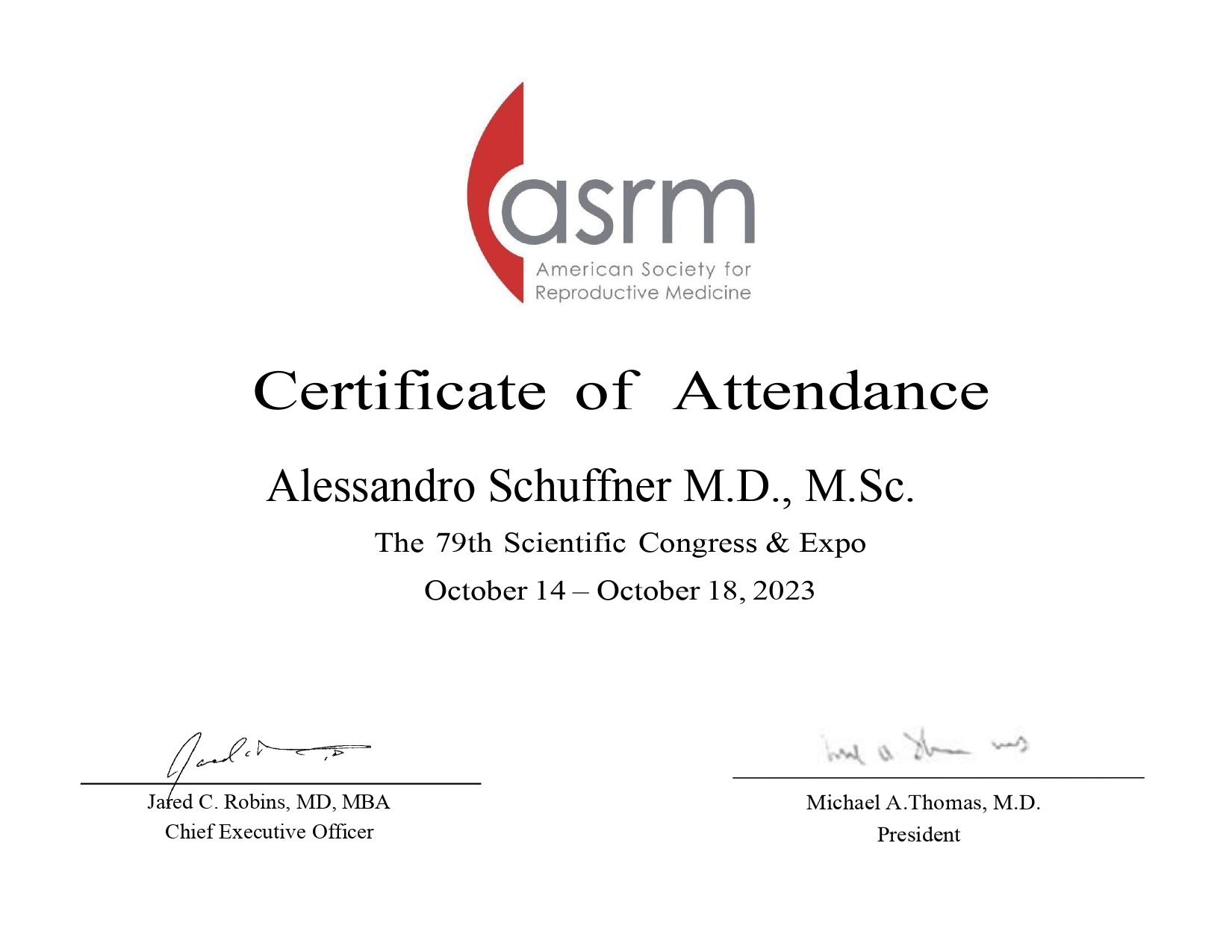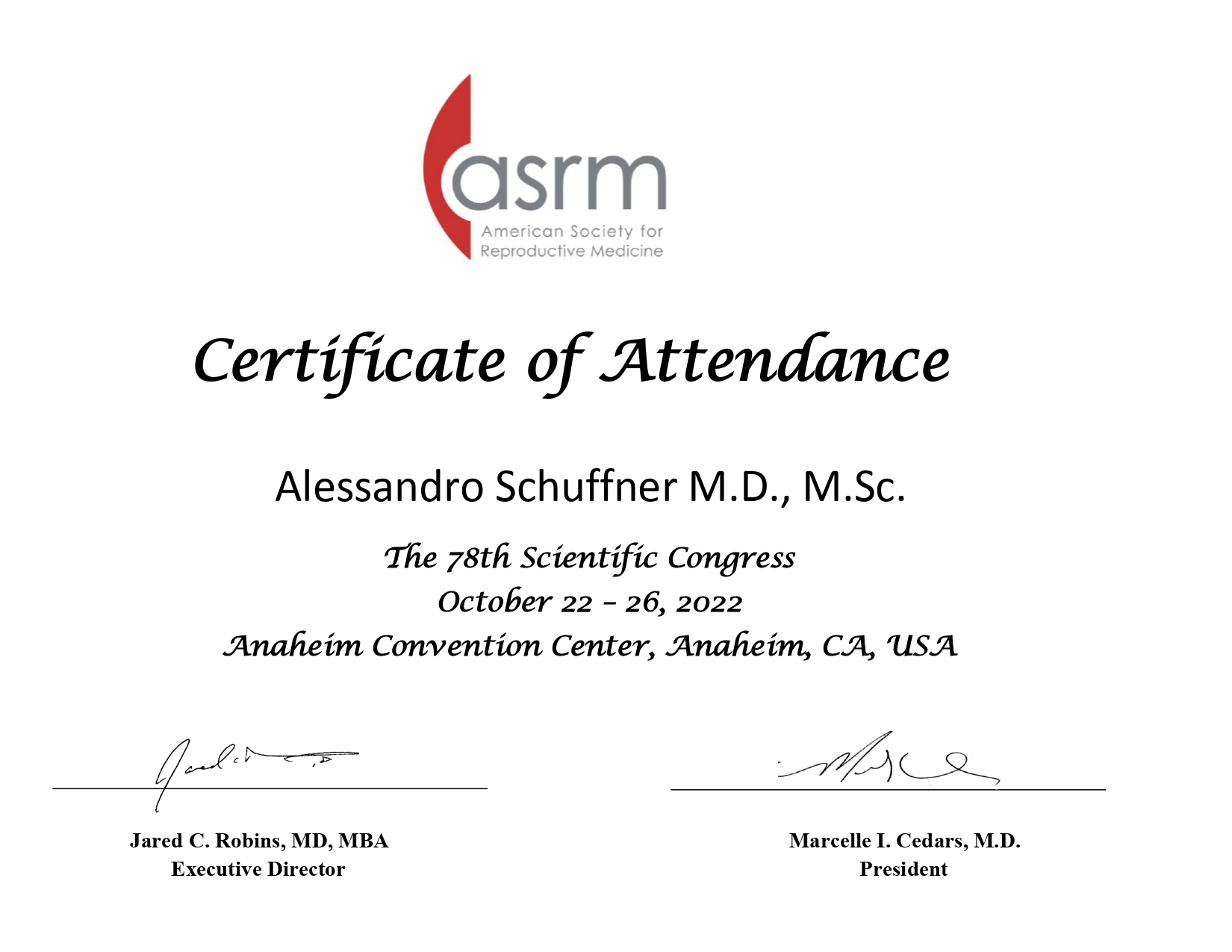 Certificado ASRM
